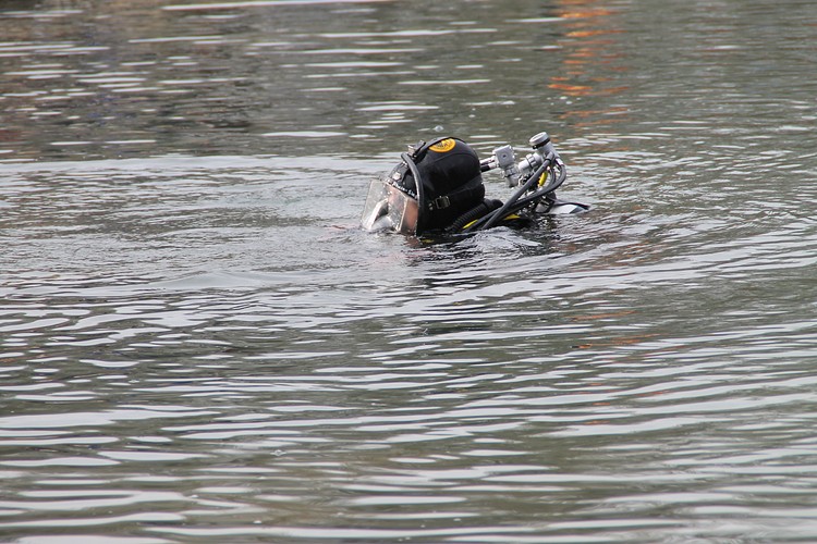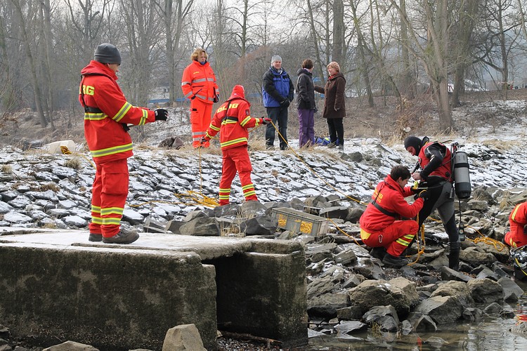 und Prüfung im Rheinarm vor der Insel Grafenwerth in Bad Honnef haben die Einsatztaucher des