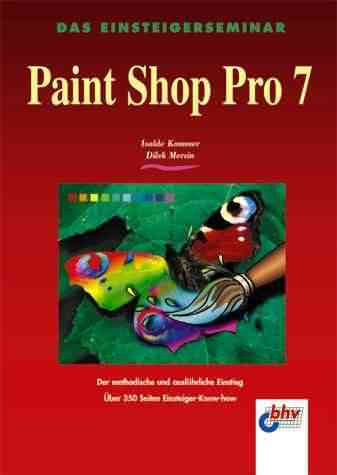 Isolde Kommer, Dilek Mersin: Einsteigerseminar Paint Shop Pro 7 Paint Shop Pro ist seit vielen Jahren auf dem Markt. Ursprünglich zum Konvertieren von Grafik-Dateiformaten konzipiert, wird mit jeder neuen Version der Abstand zu den professionellen Bildbearbeitungsprogrammen wie Photoshop kleiner. Das spiegelt sich auch in der vermehrt auf den Markt drängenden Literatur wieder. vollständige Besprechung des Buchs